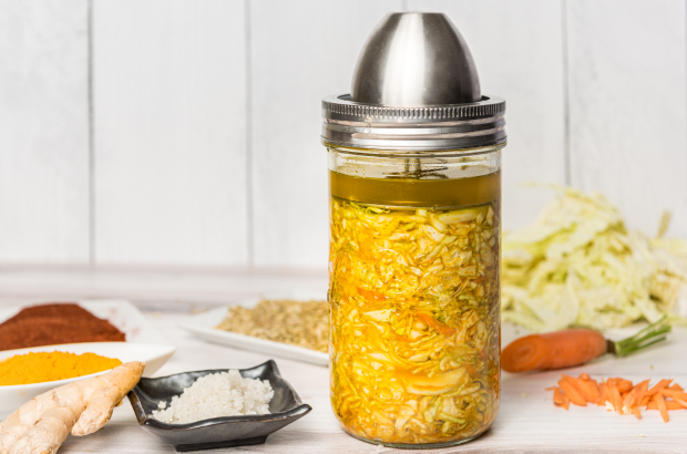 I have been making sauerkraut and other fermented vegetables for years, but have used other fermenting devices made with plastic. I've thrown all the plastics out and use the stainless devices exclusively and have never had an issue. Love these devices and follow Karen Diggs advice for fermenting.